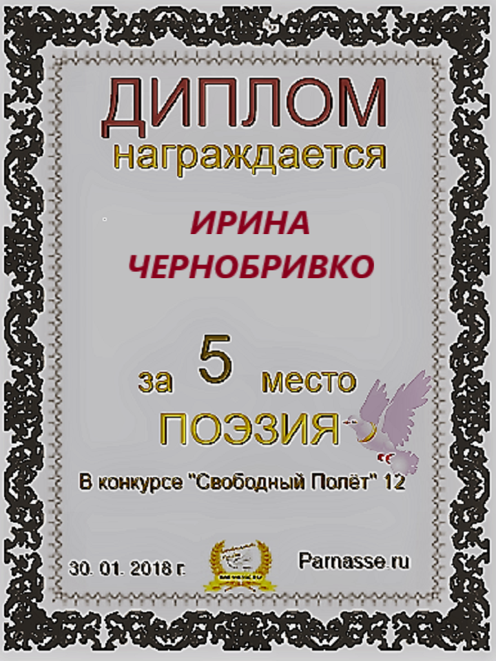 Поздравляю с 5 местом в конкурсе "Литературная Комета - Полёт № 24" номинация Поэзия! Спасибо за творчество!