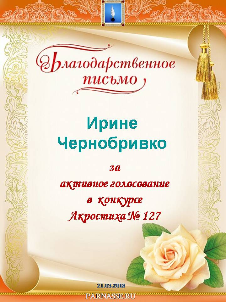 Благодарность активному комментатору в конкурсе Акростиха № 119!СПАСИБО БОЛЬШОЕ!