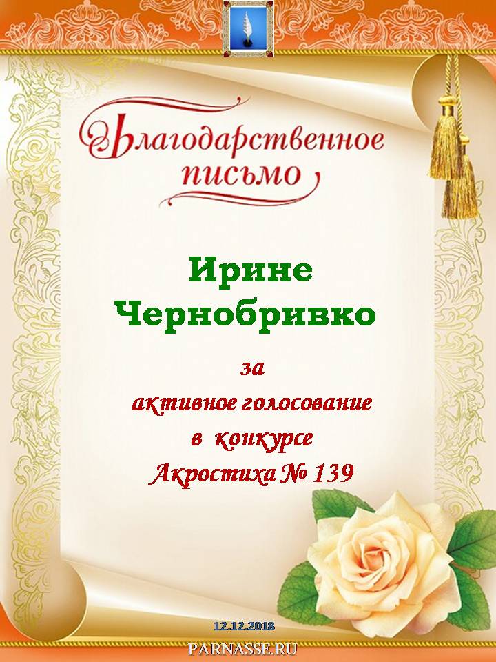 Благодарность за активное голосование в конкурсе Акростиха №144!СПАСИБО БОЛЬШОЕ!