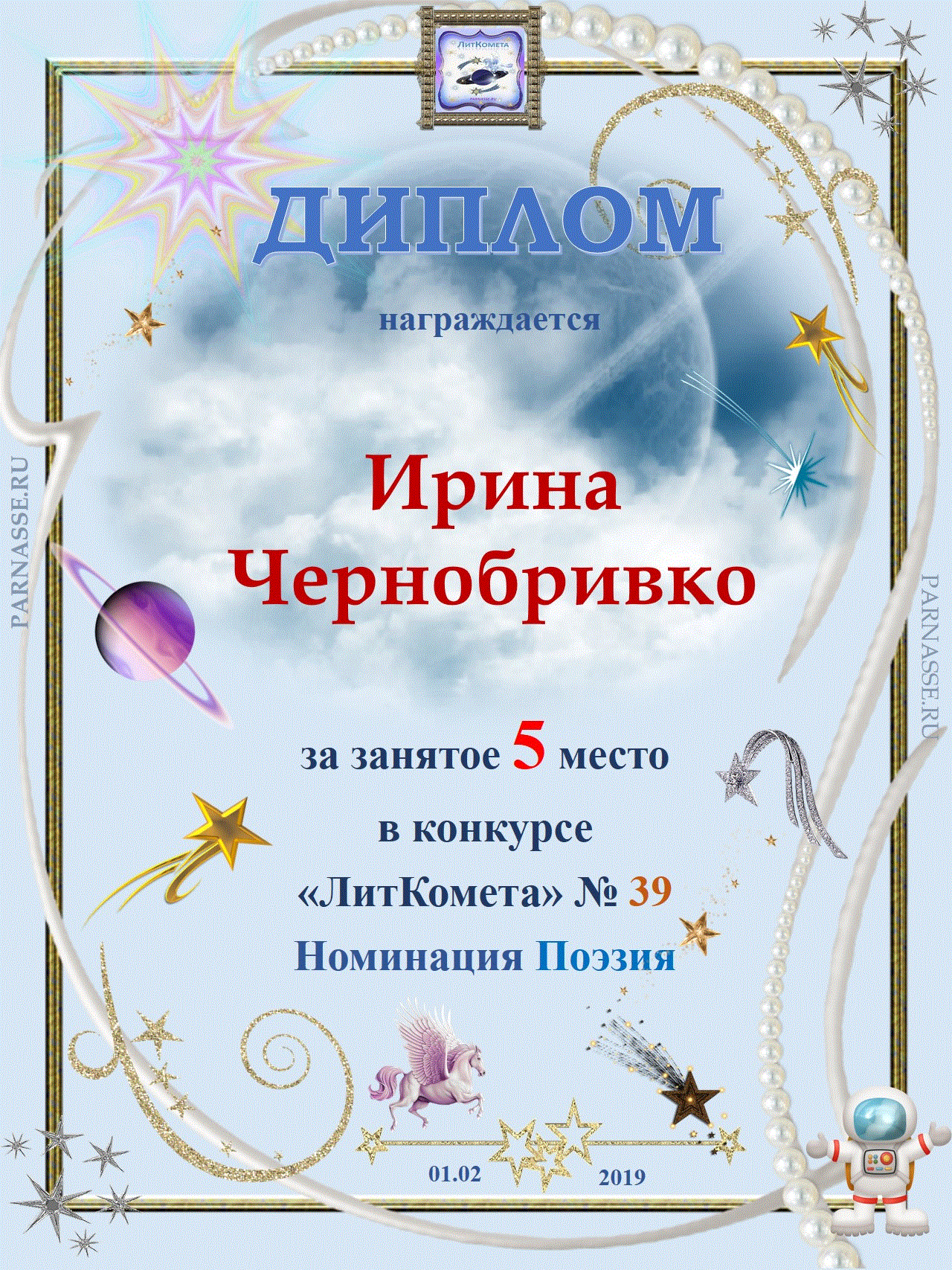 Поздравляю с занятым 2 местом в конкурсе “Литературная Комета – Полёт № 45» - Номинация Проза!