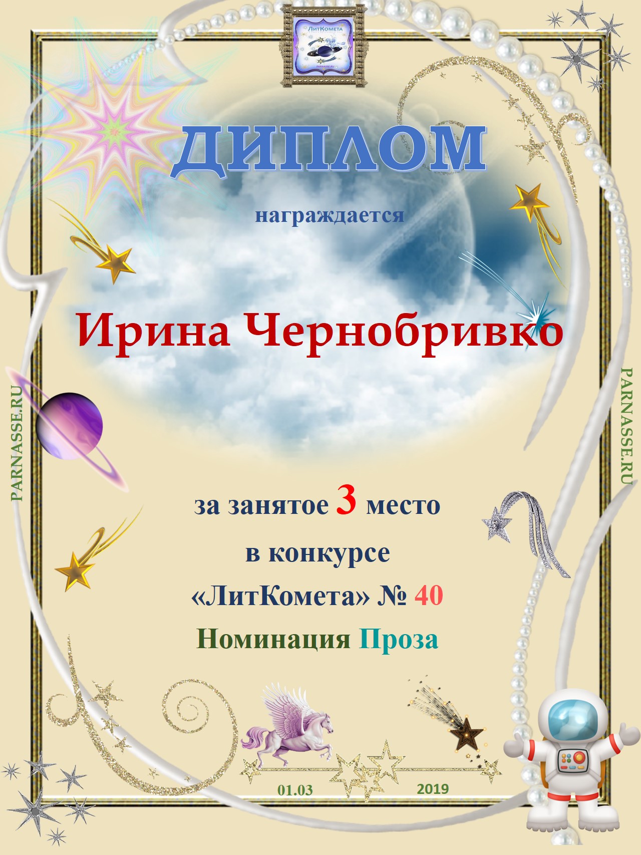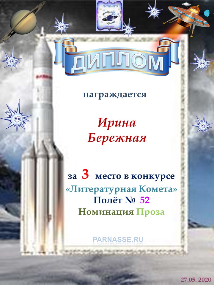 Поздравляю с занятым 3 местом в конкурсе «Литературная Комета – Полёт № 52» - Номинация Проза!