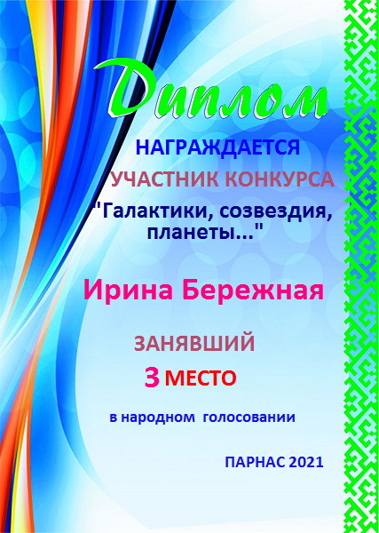 Третье место в народном голосовании по итогам конкурса "Галактики,созвездия,планеты..."