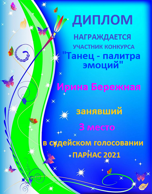 Третье место в судейском голосовании по итогам конкурса "Танец - Палитра Эмоций"
