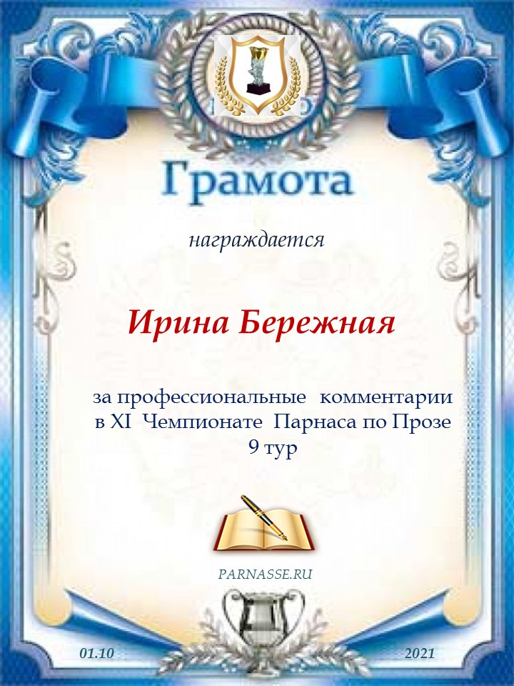 Благодарю за профессиональные комментарии в 9 туре XI Чемпионата Парнаса по Прозе!