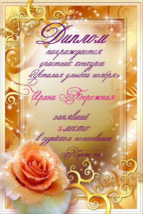 Третье место в судейском голосовании по итогам конкурса «Усталая улыбка ноября»