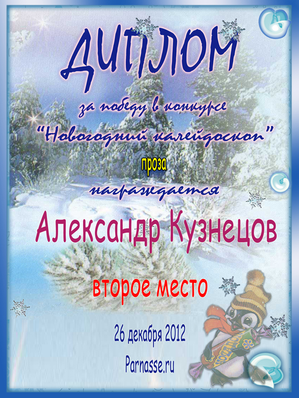 За участие в поэтическом конкурсе "Декабрь – чудес и новогодних сказок время", номинация "Декабрьская сказка". Пусть счастье, любовь, здоровье и удача будут вашими верными спутниками каждый день из года в год!