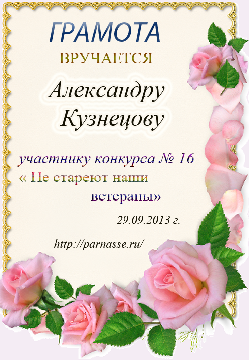 Диплом победителя конкурса "О Победе с гордостью, о павших с почтением"