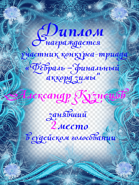 Благодарим Вас за участие в зимнем конкурсе в номинации "Стихи о Зиме". Произведение "Зимний вечер"