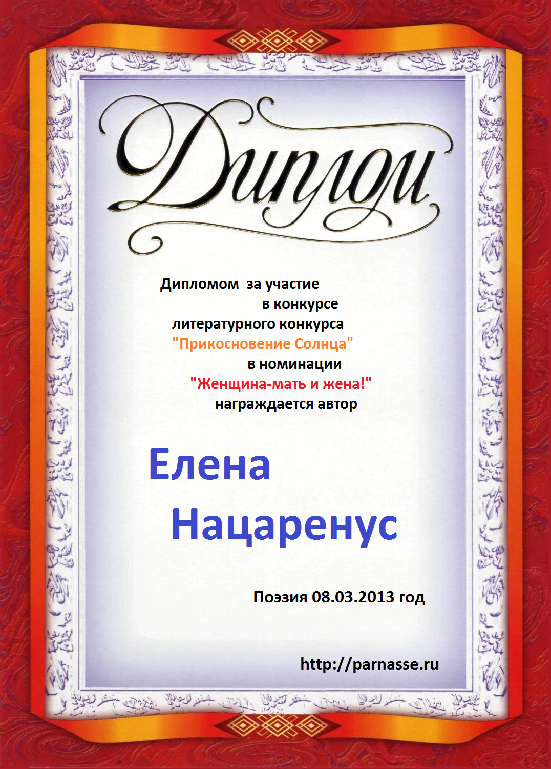 Диплом в конкурсе поэзии "Прикосновение Солнца"