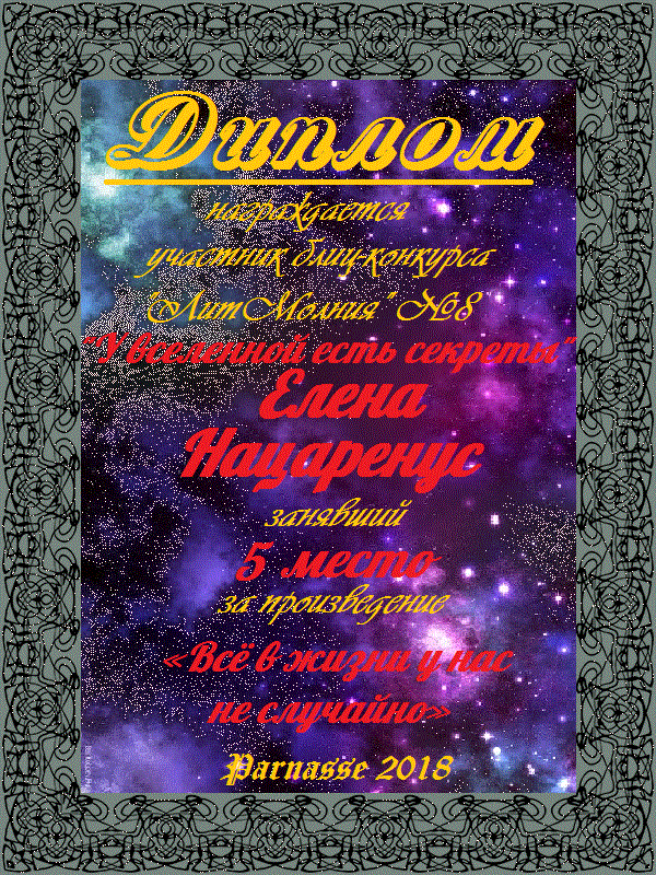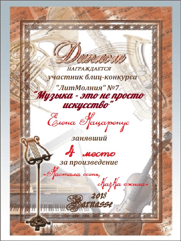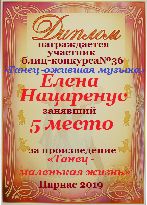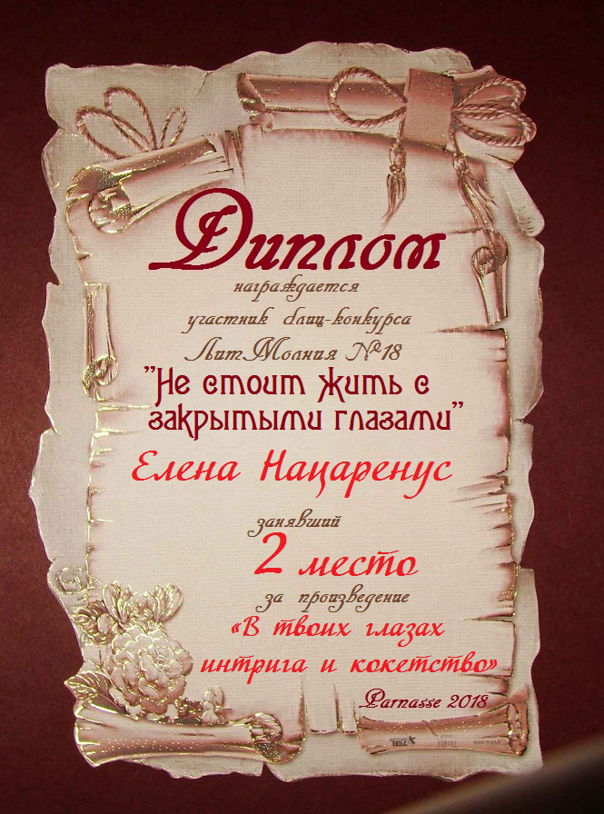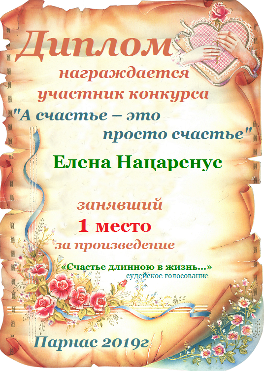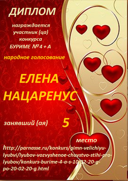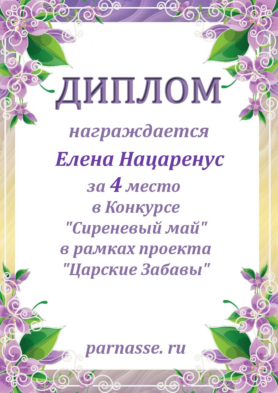 За неугасающую и неисчерпаемую творческую активность, постоянный контакт с Музой и признание сообществом "Парнасцев".От всей души желаем Вам, Елена, здоровья, любви, успехов, благополучия, удачи и творческого вдохновения!