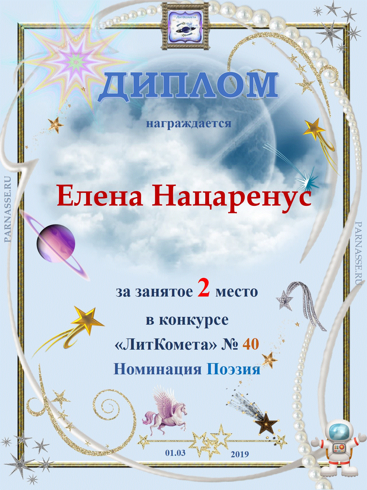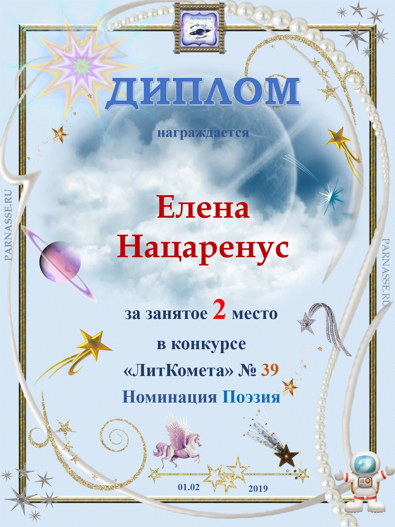 Поздравляю с занятым 2 местом в конкурсе “Литературная Комета – Полёт № 45» - Номинация Поэзия