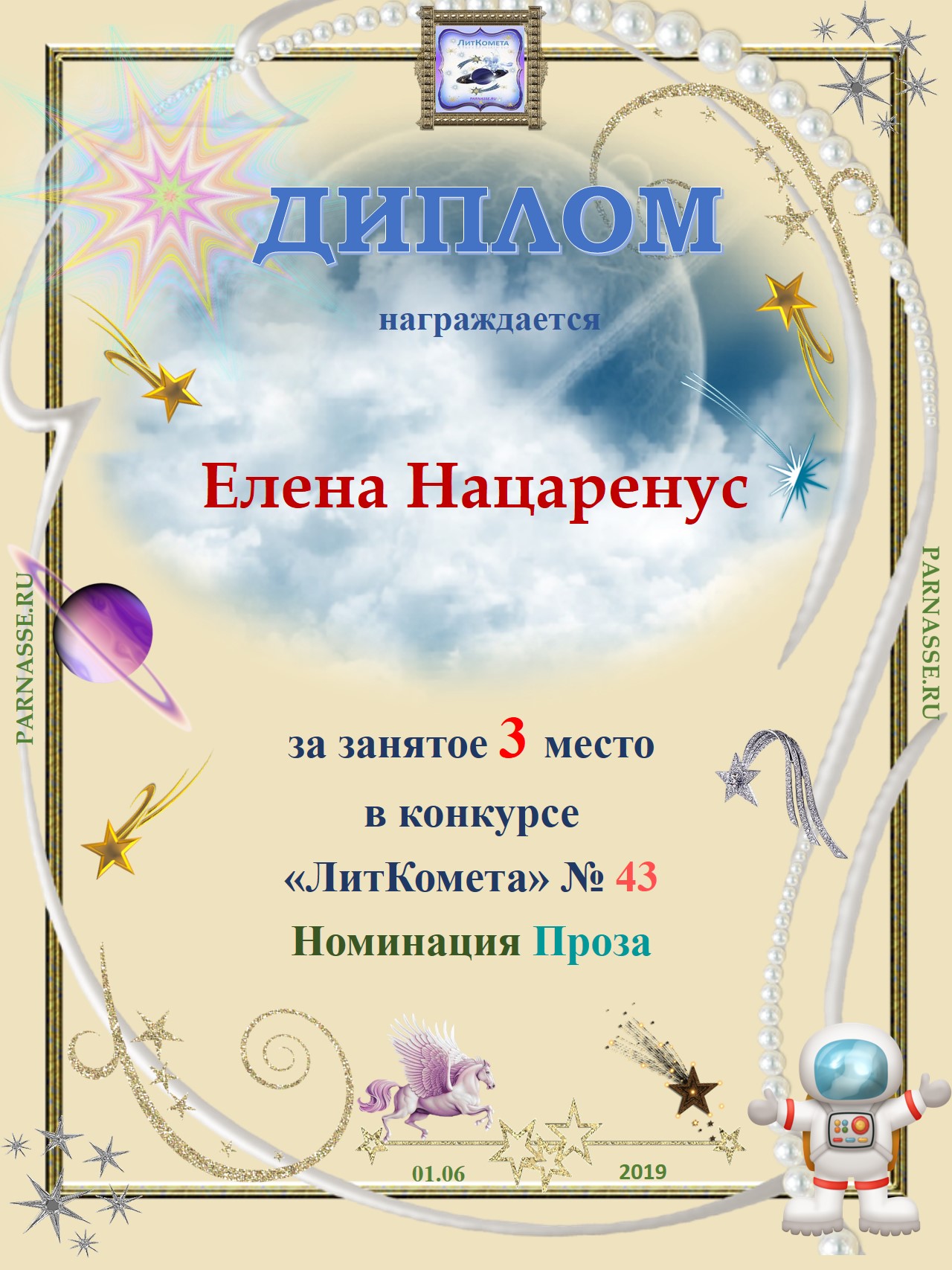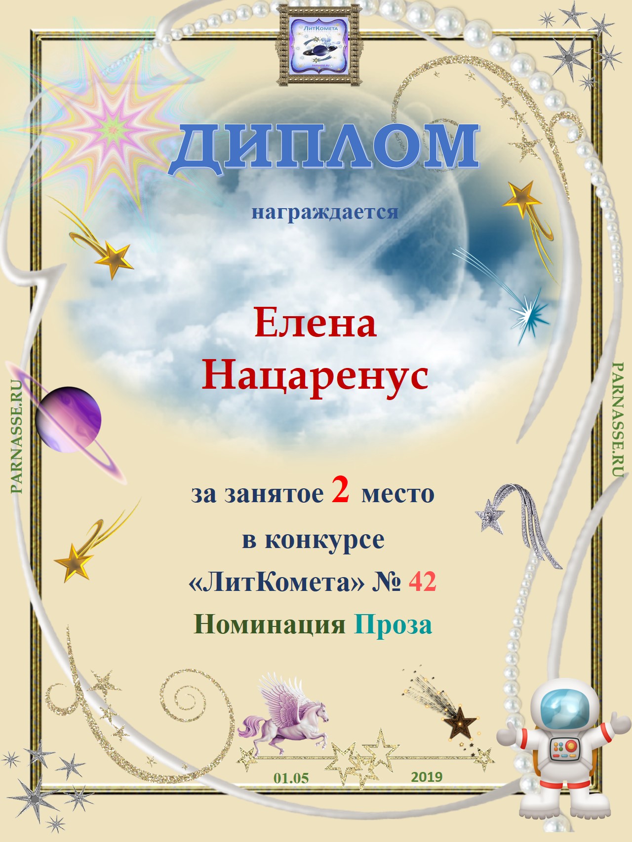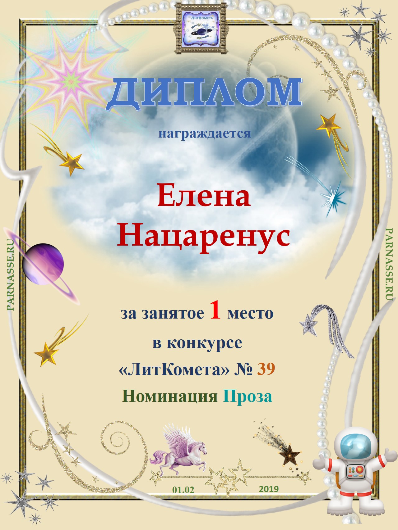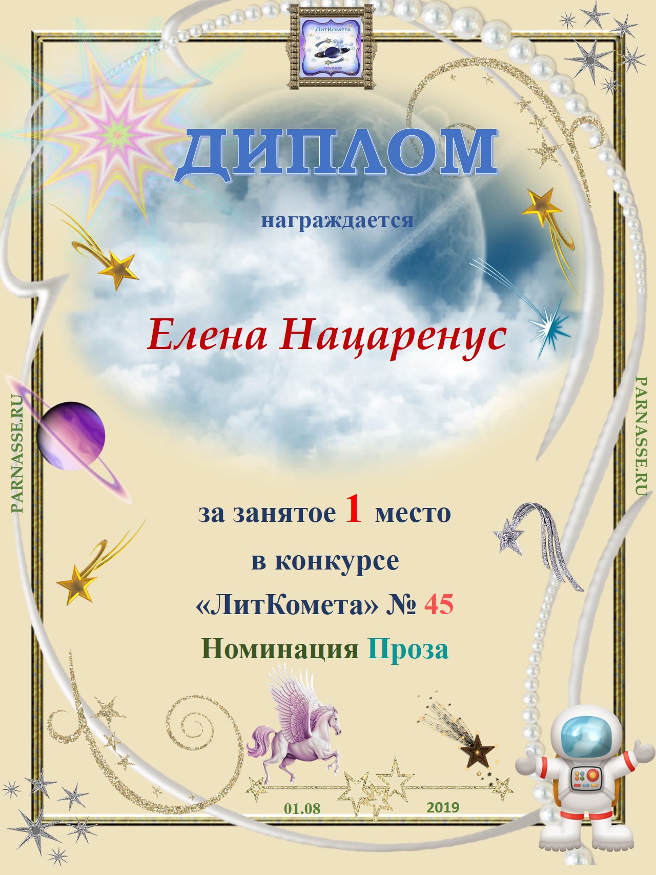 Поздравляю с занятым 1 местом в конкурсе “Литературная Комета – Полёт № 45» - Номинация Проза!