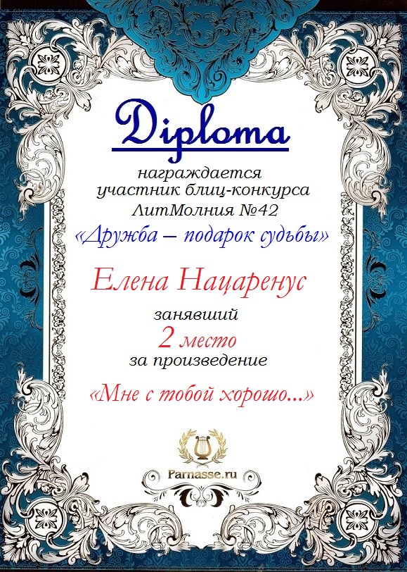 Диплом за 2 место в 141 конкурсе АКРОСТИХА (Альтернатива)! ПОЗДРАВЛЯЮ!