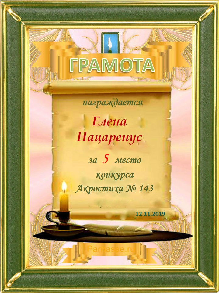Грамота за 5 место в 140 конкурсе АКРОСТИХА (Альтернатива)! ПОЗДРАВЛЯЮ!