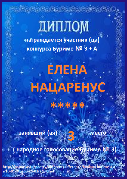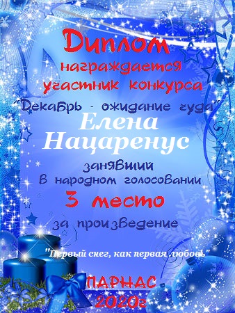 Третье место по итогам литературного конкурса «Самый красивый месяц зимы», судейское голосование. Поздравляем с прекрасной победой!