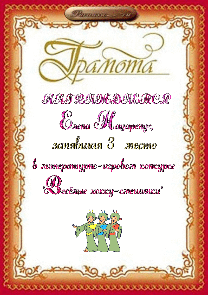 Грамота за творческие успехи в литературно-игровом конкурсе "В гостях у буриме".ПОЗДРАВЛЯЕМ!