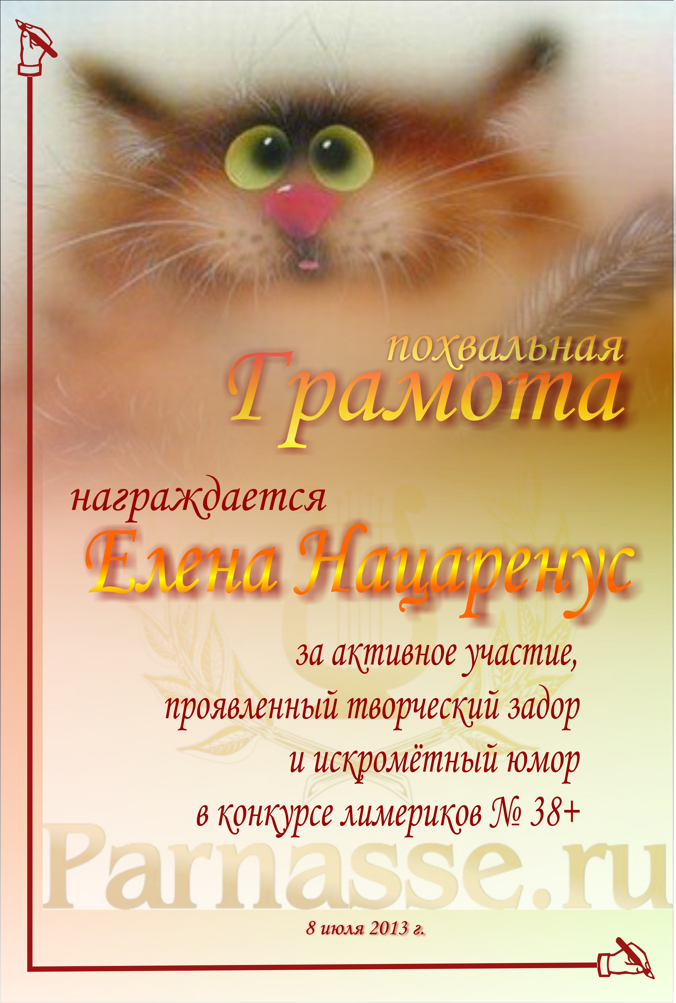 Похвальная грамота за 5 место в конкурсе лимериков № 38+ (8.07.2013 г.)