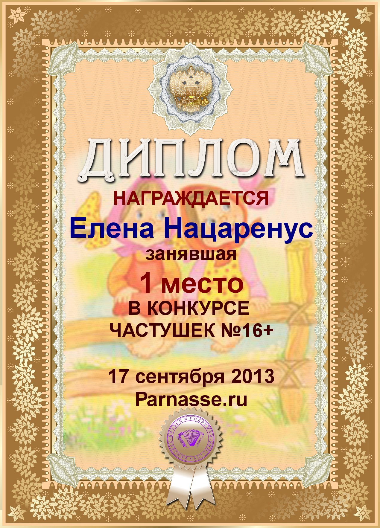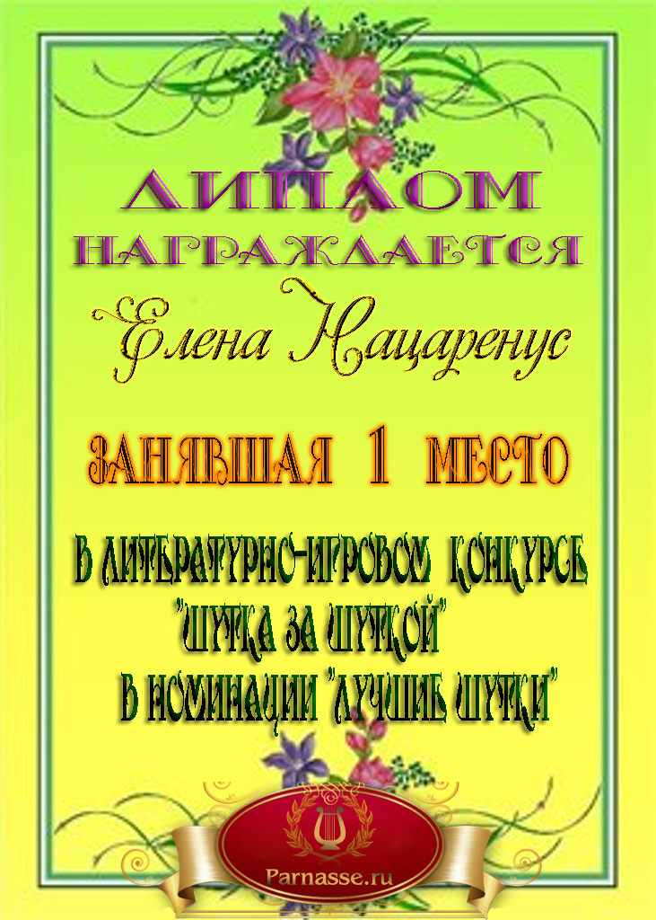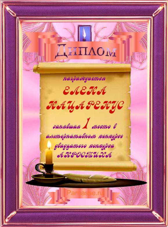 Диплом за 1 место в 140 конкурсе АКРОСТИХА (Альтернатива)! ПОЗДРАВЛЯЮ!