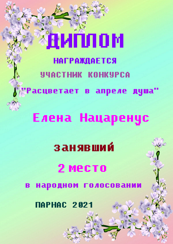 Второе место в народном голосовании по итогам конкурса "Расцветает в апреле душа"