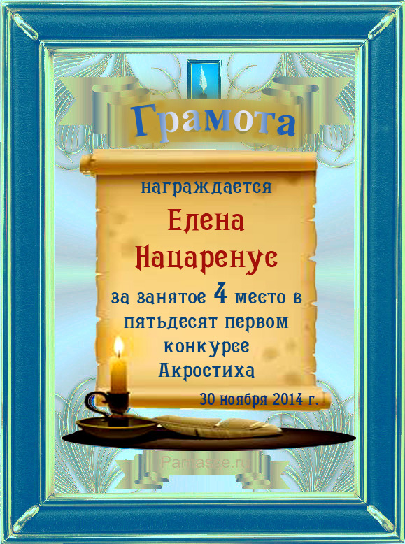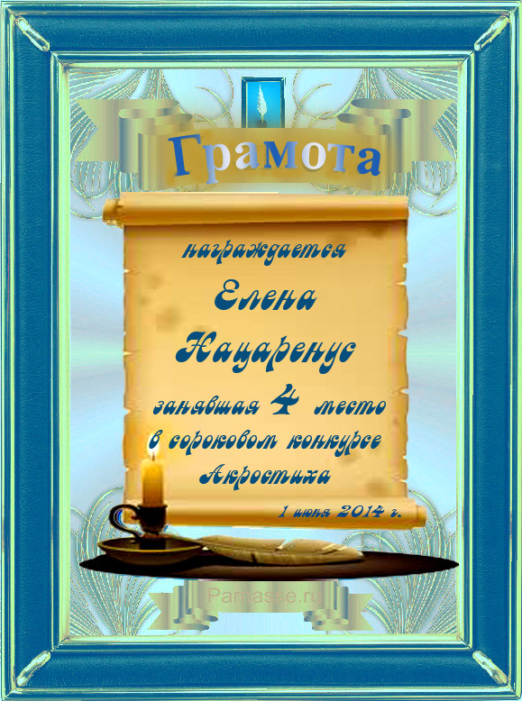Грамота за 4 место в 139 конкурсе АКРОСТИХА (Альтернатива)! ПОЗДРАВЛЯЮ!