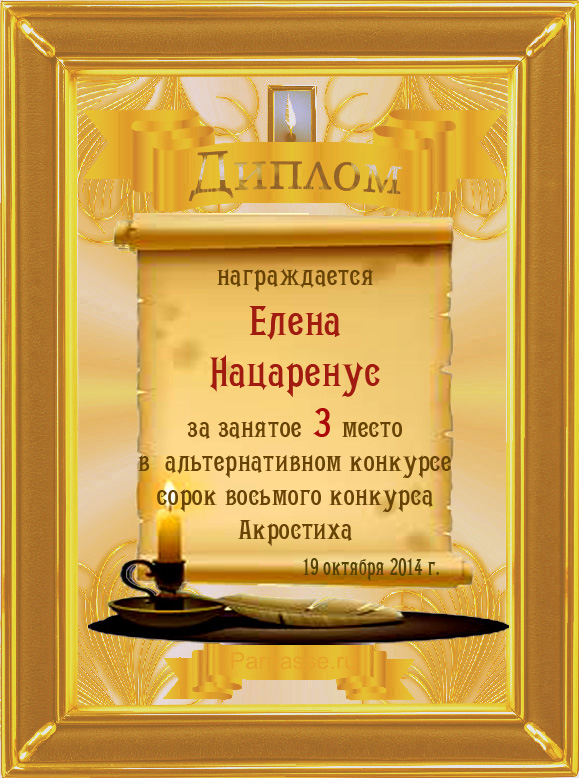 Диплом за 3 место в 138 конкурсе АКРОСТИХА (Альтернатива)! ПОЗДРАВЛЯЮ!