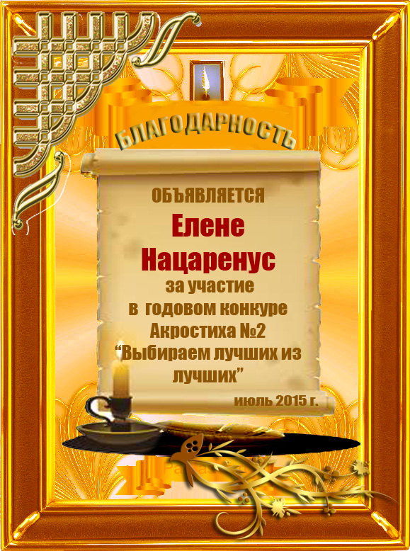 Диплом за 2 место в 1 годовом итоговом конкурсе АКРОСТИХА (Альтернатива)! ПОЗДРАВЛЯЮ!
