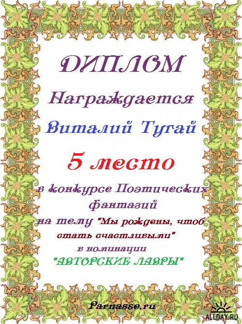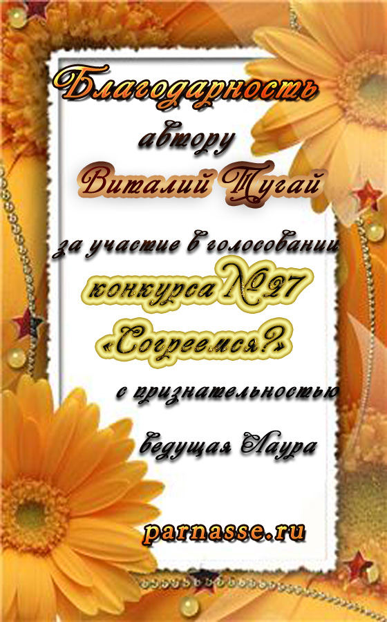Благодарим Вас за участие в летнем ярком конкурсе, в поэтической номинации! Всех Вам благ!