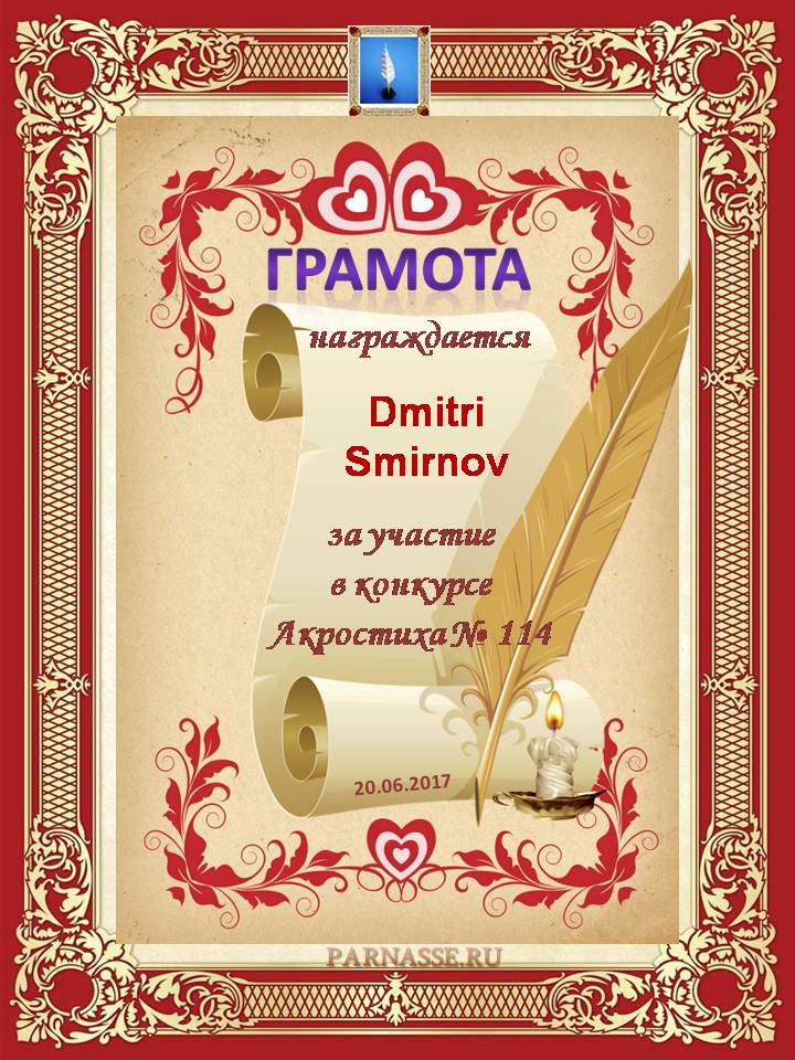 Грамота за 4 место в 96 конкурсе АКРОСТИХА (Альтернатива)! ПОЗДРАВЛЯЮ!