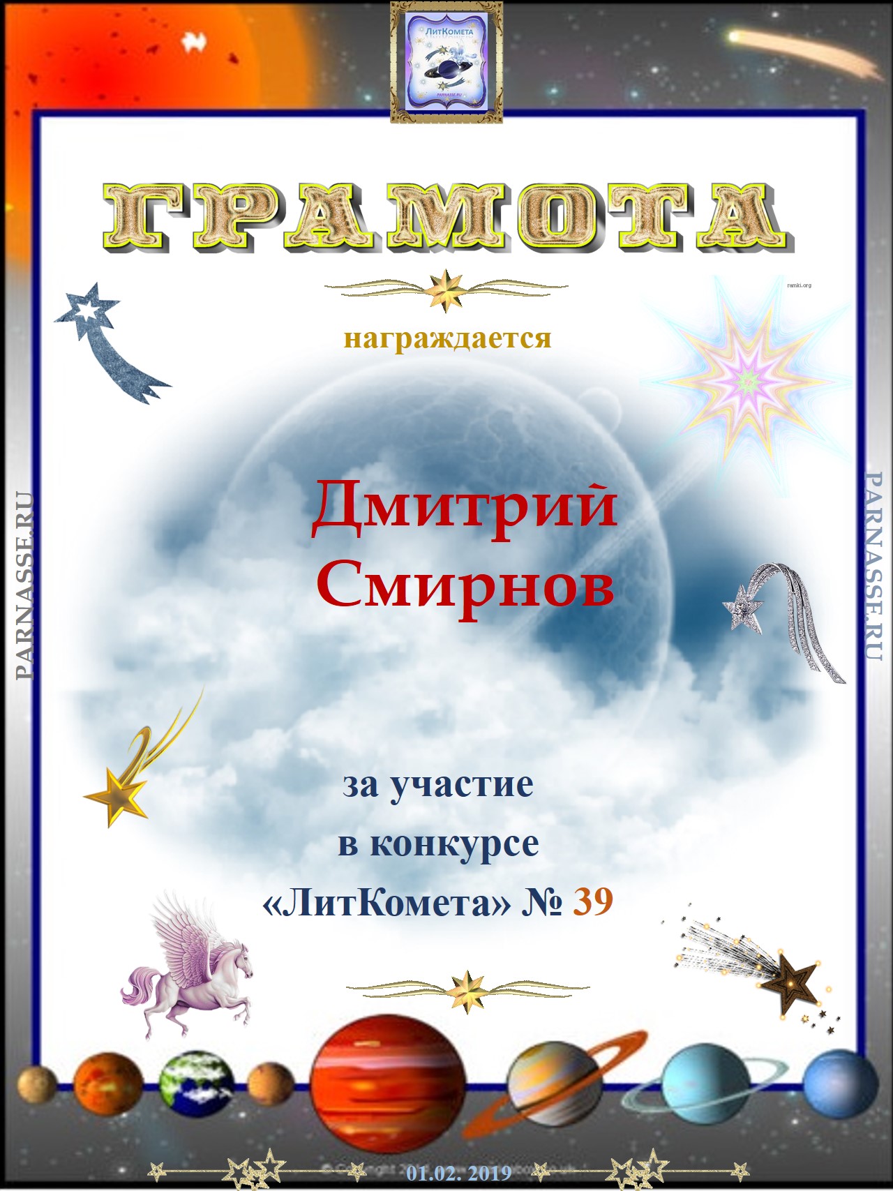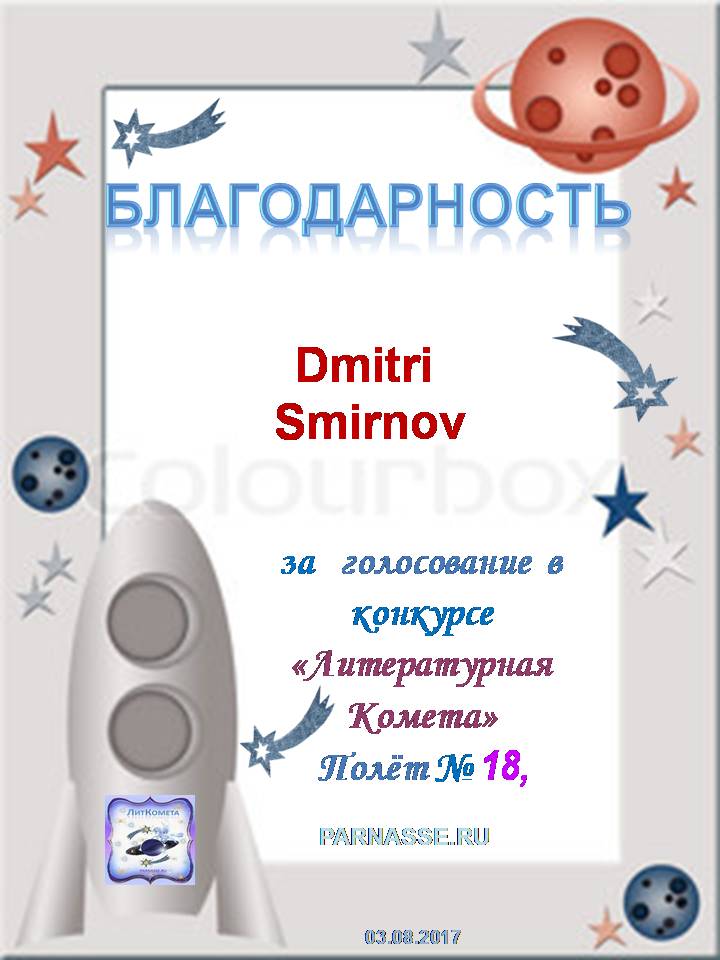 Поздравляю с занятым 3 местом в конкурсе “Литературная Комета – Полёт № 45» - Номинация Поэзия