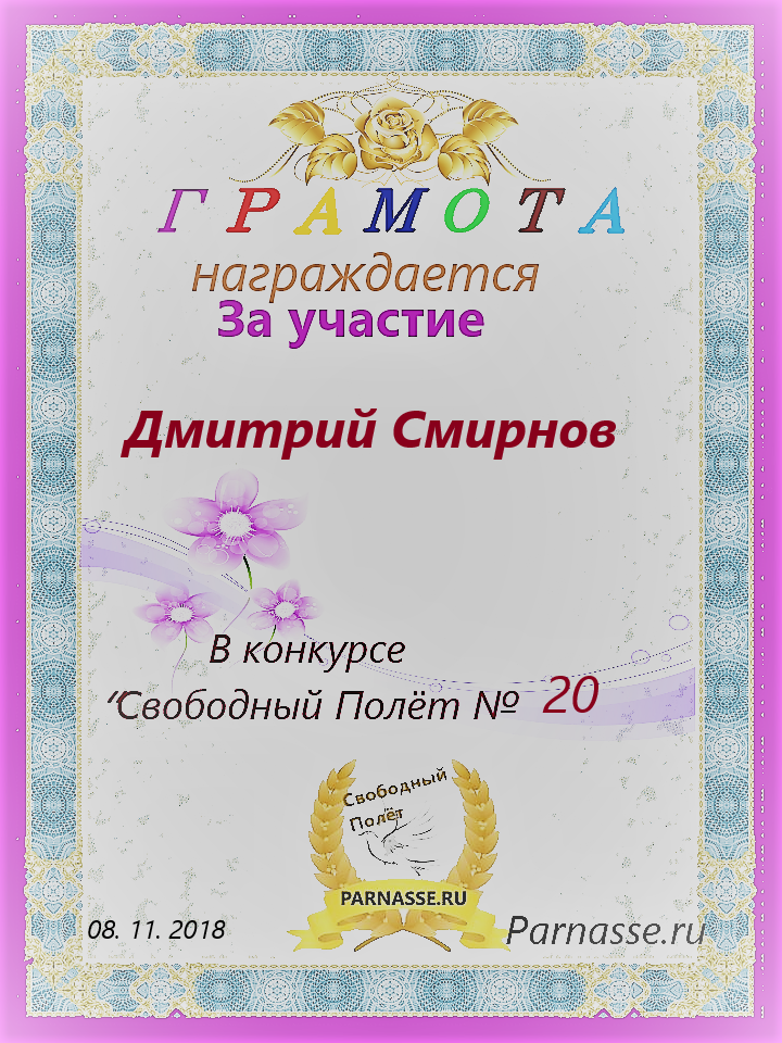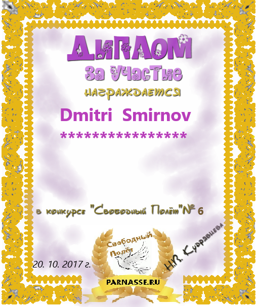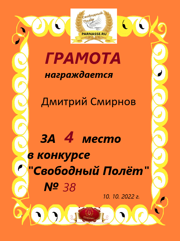 за 4 место в конкурсе "Свободный Полёт" № 36 ПОЭЗИЯ