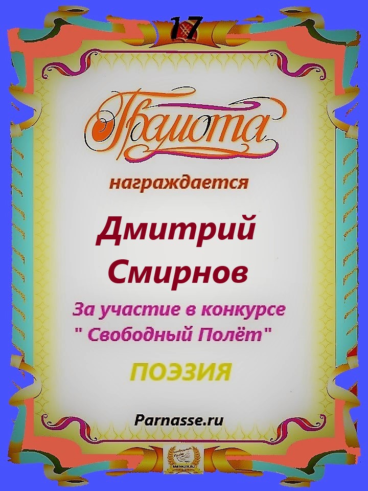 за 3 место в конкурсе "Свободный Полёт" № 37 ПОЭЗИЯ