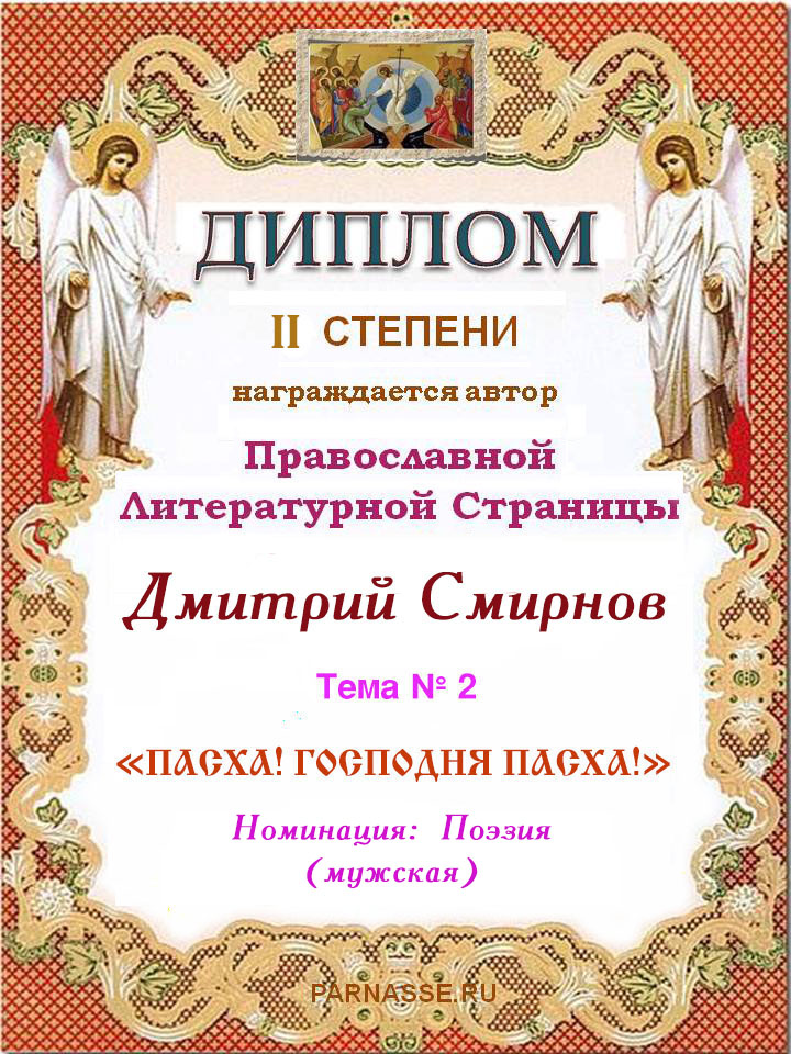 Православная ЛитСтраница. Тема № 2 "Пасха! Господня Пасха!" Номинация: Поэзия (мужская).Поздравляем с замечательной победой!