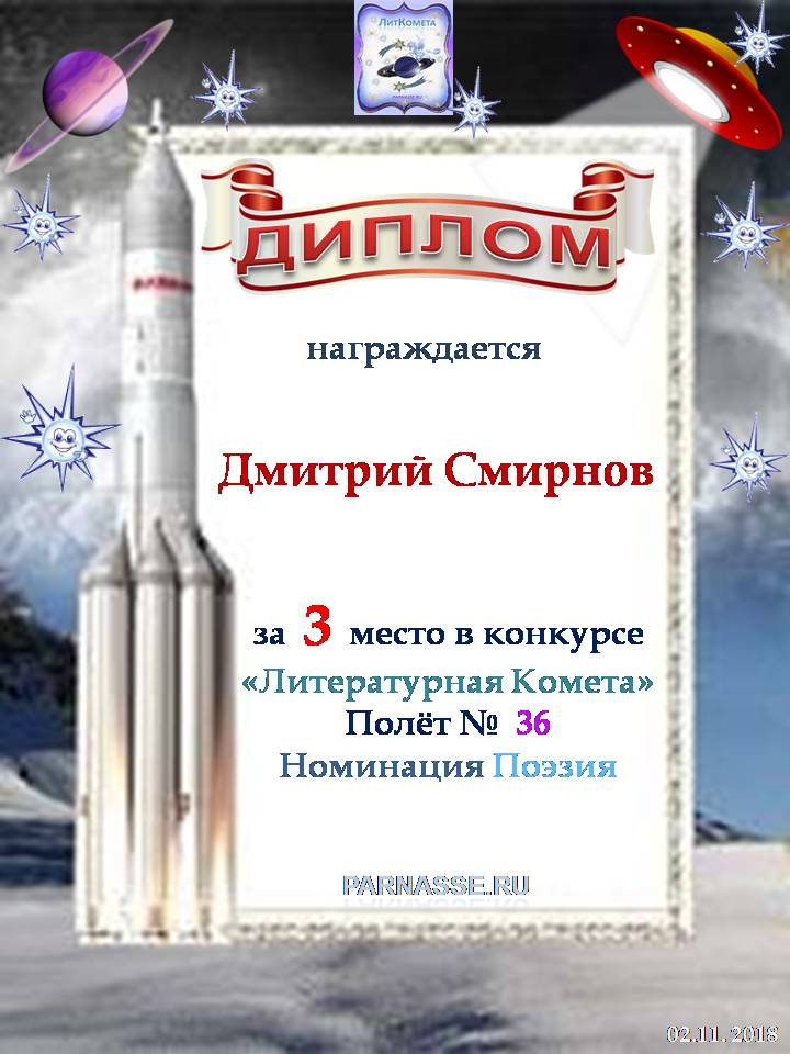 За 3 место - Номинация Поэзия, ЛитКомета, Полёт № 47