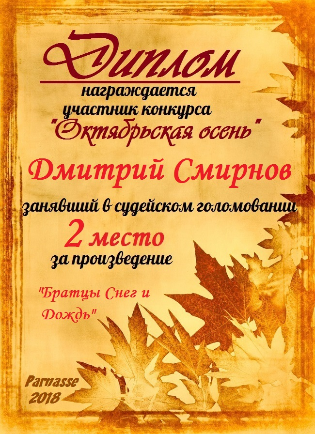 Лауреат 3-й степени. Стихотворение "РОСОЙ ХОЛОДНОЙ". Парнасская Горница. Тема № 5.