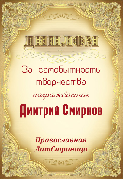 Диплом "За самобытность творчества". Православная Литературная Страница.