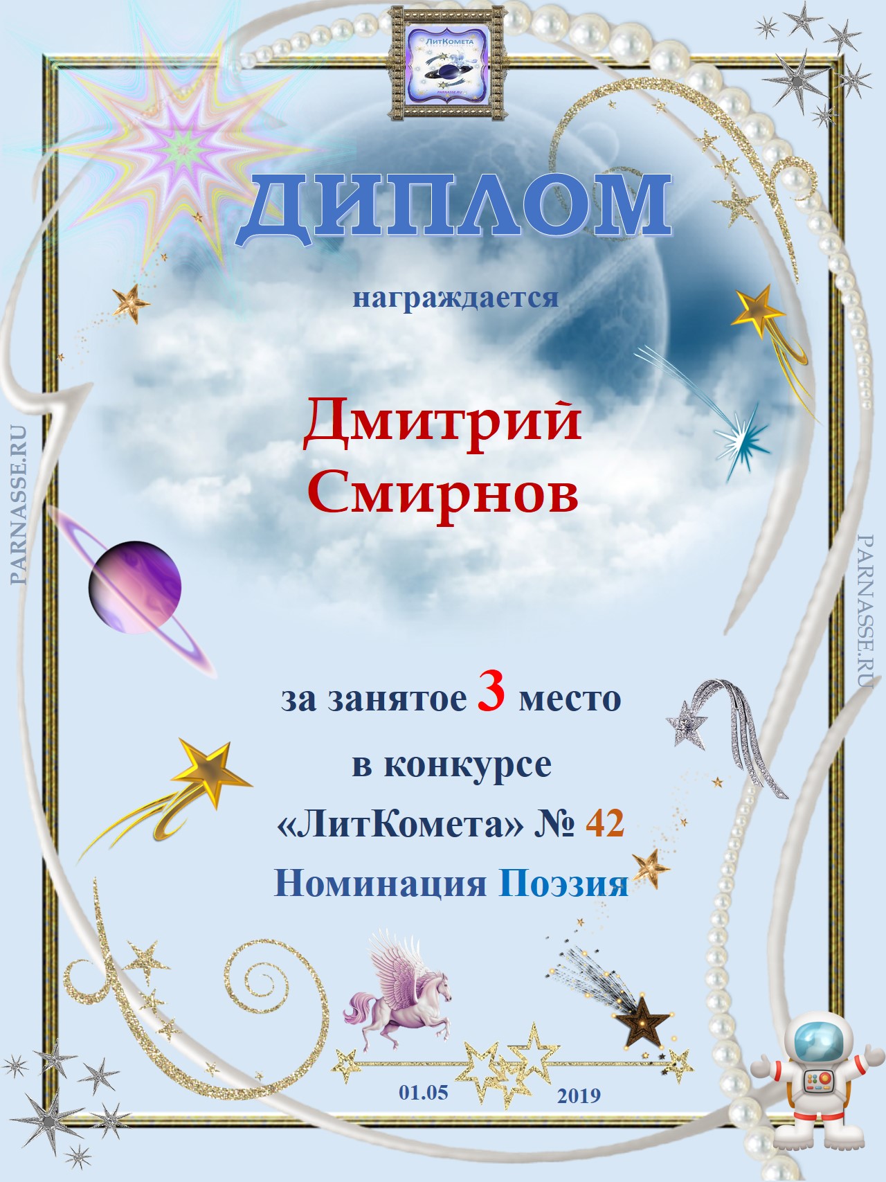 Поздравляю с занятым 3 местом в конкурсе "Литературная Комета - Полёт № 47" - Номинация Поэзия!