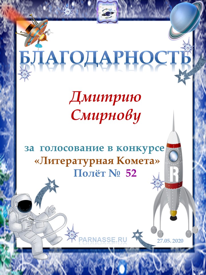 Вручается за голосование в конкурсе "Литературная Комета - Полёт № 52"
