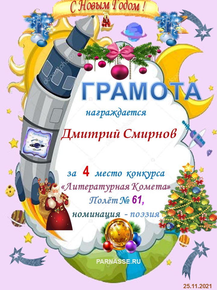 За 3 место - Номинация Поэзия, ЛитКомета, Полёт № 45