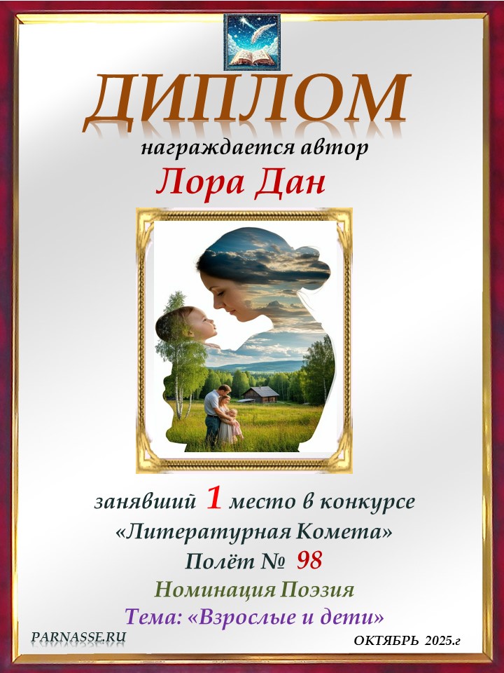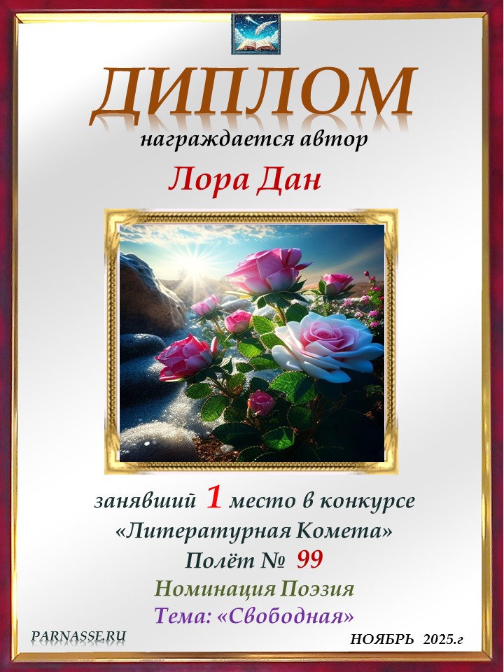 Поздравляю с занятым 1 местом в конкурсе "Литературная Комета - Полёт № 56" - Номинация Поэзия!