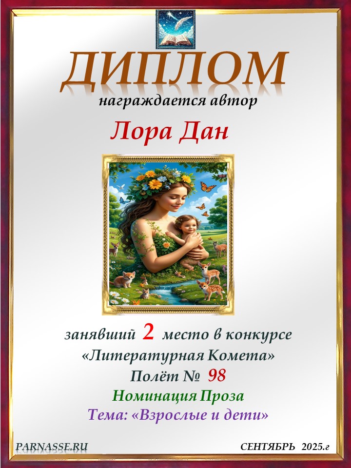 Поздравляю с занятым 2 местом в конкурсе "Литературная Комета - Полёт № 59" Номинации Проза!
