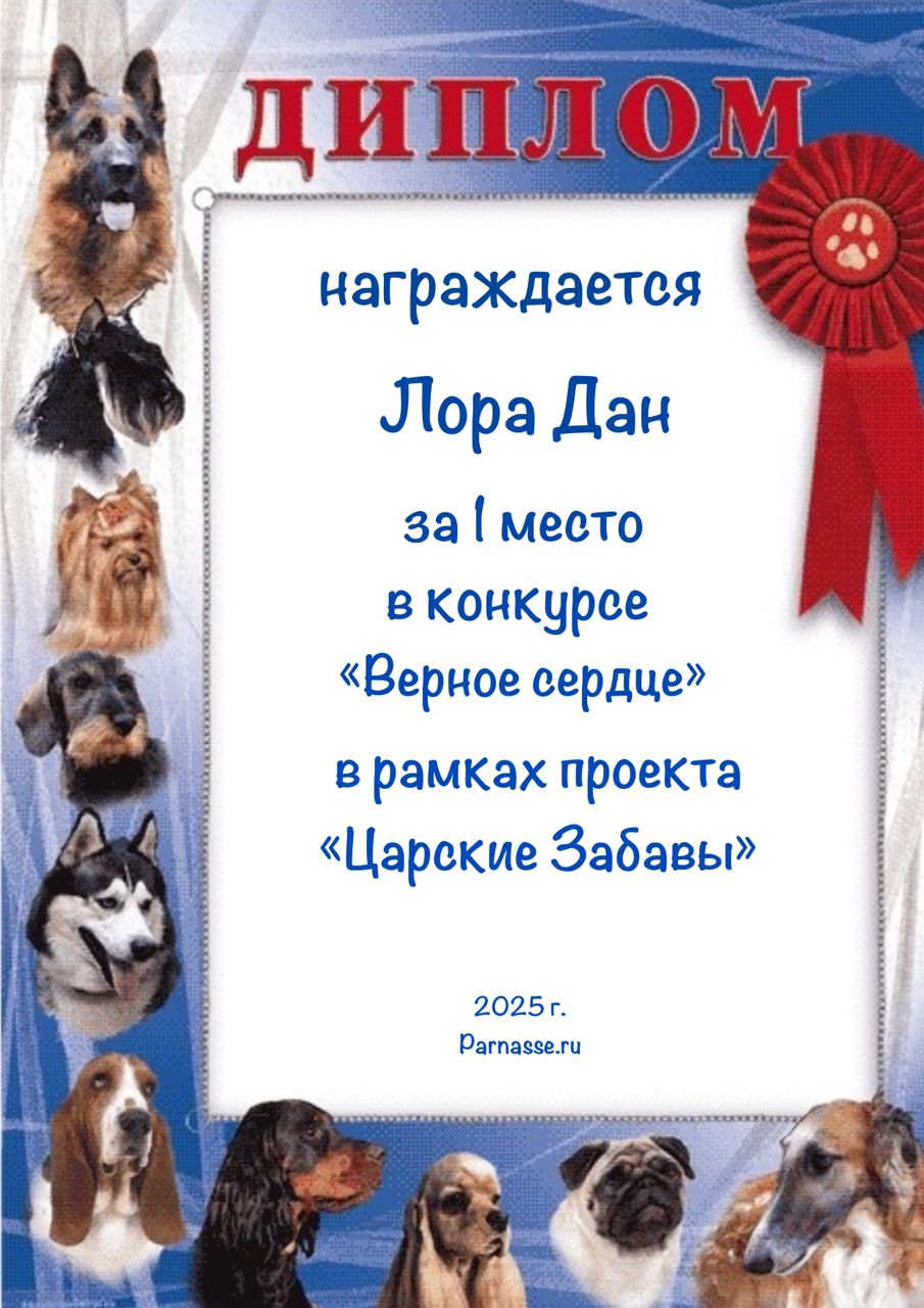 1 место в конкурсе "Верное сердце". Поздравляем!