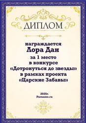 Медаль от ведущей конкурса "Дотронуться до звезды" за оригинальность стихотворения и творческие находки.