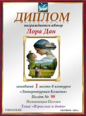 ![]() Медаль за 1 место в конкурсе "ЛитКомета - Полёт № 96"