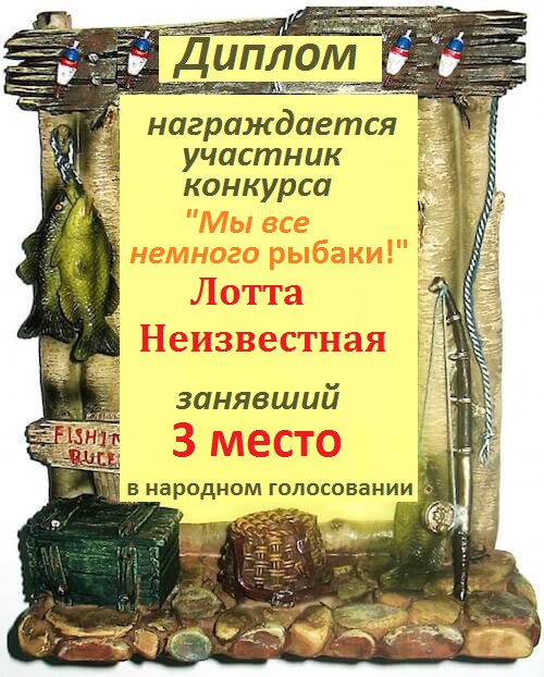 Третье место по итогам конкурса «Как-то раз на рыбалке", народное голосование. Поздравляем с прекрасной победой!