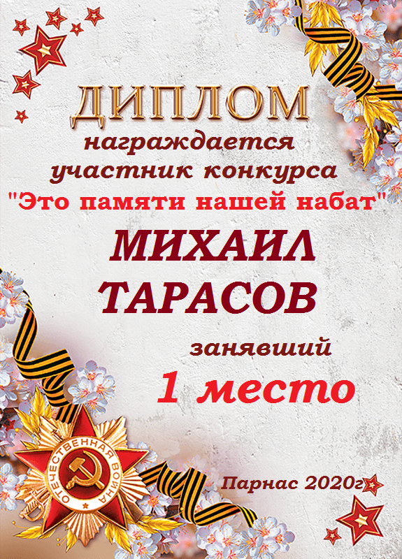 Диплом победителя конкурса "О Победе с гордостью, о павших с почтением"
