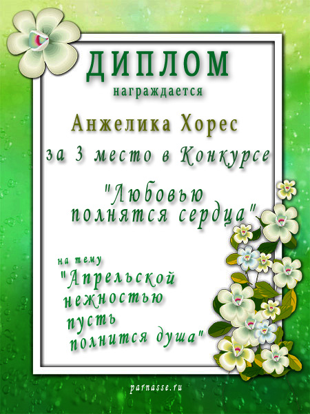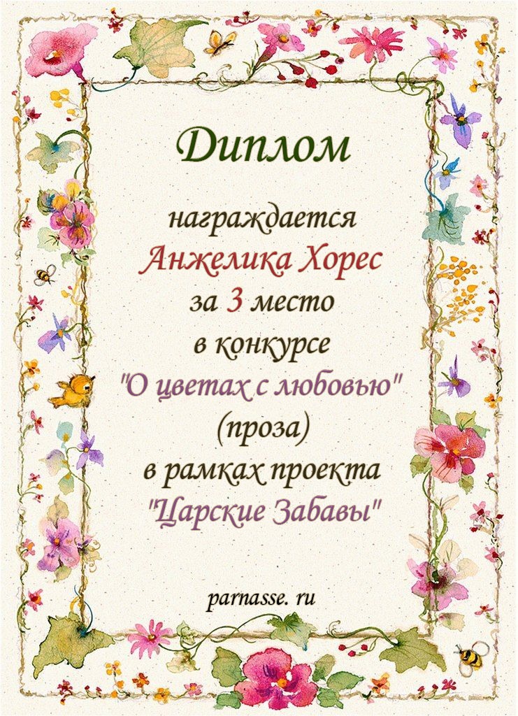 3 место в конкурсе "О цветах с любовью" (проза) в рамках проекта "Царские Забавы"