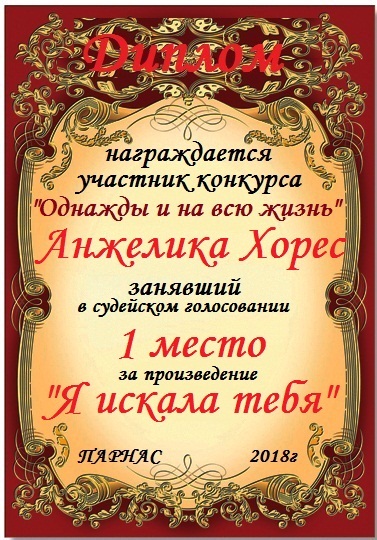 Номинация "Стихи о Любви", судейское голосование, произведение "Я искала тебя".Поздравляем!