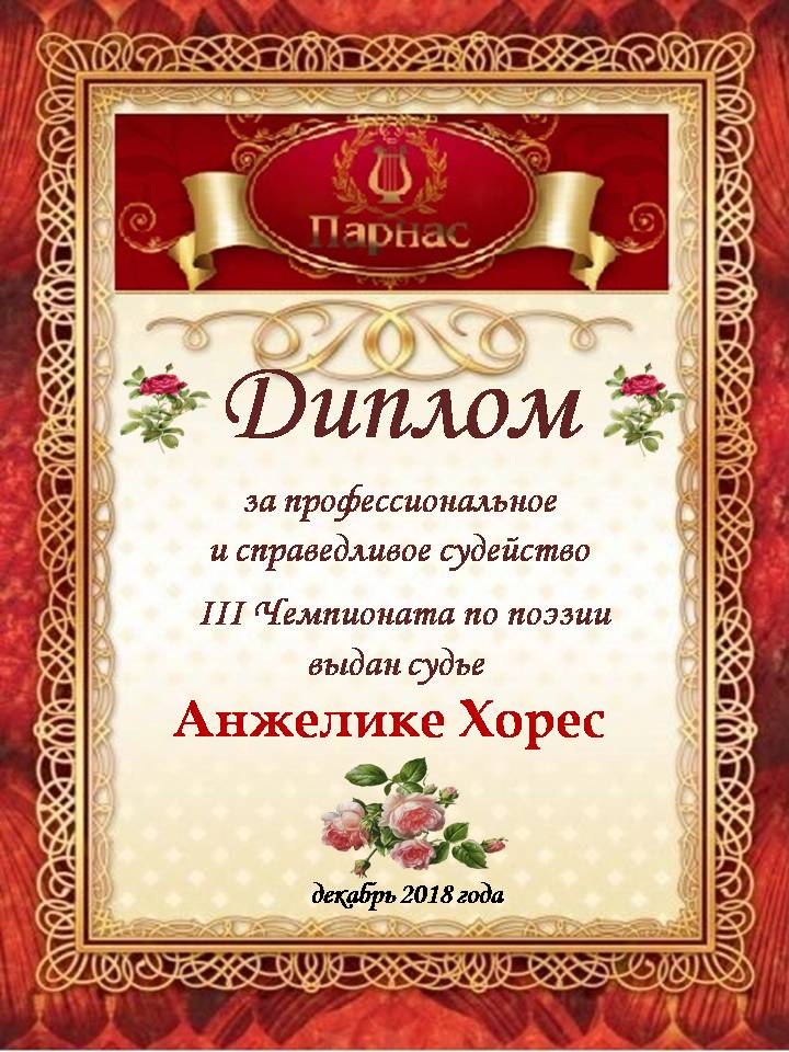 Спасибо за высокопрофессиональное судейство в 3 туре III Чемпионата Поэзии!
