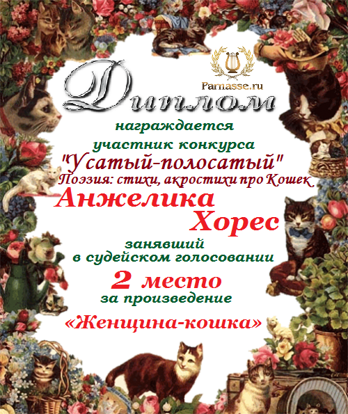 Второе место в конкурсе " Усатый-полосатый ", судейское голосование. Поздравляем с прекрасной победой!