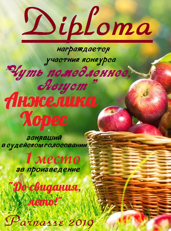 Первое место в конкурсе " Чуть помедленнее, Август", судейское голосование. Поздравляем с прекрасной победой!